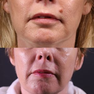 This patient had a mole that was growing in size on her upper lip. Radiofrequency was used to shave this back to the skin level.